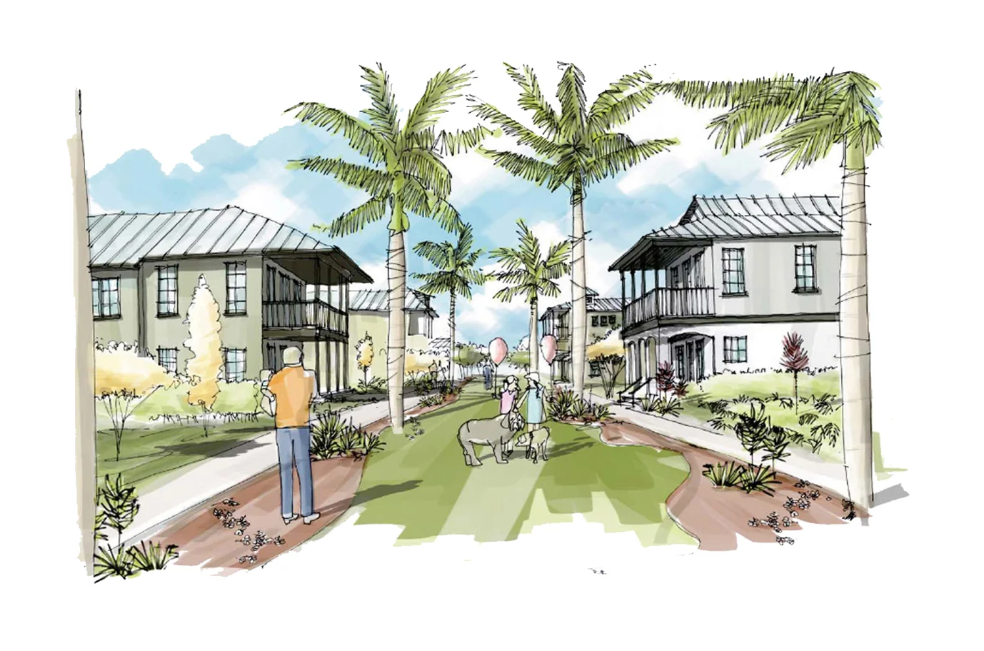 The community plan includes a variety of energy-efficient housing types, including town homes, flats and lofts, single-family homes, age-targeted housing for active adults, and affordable workforce housing, for a total of over 2,800 residential units. The commercial component includes over 1.7 million square feet of retail, businesses, government and institutional uses, including an elementary school. The plan also includes 366 acres of community parks, green space, nature preserves, and waterways.